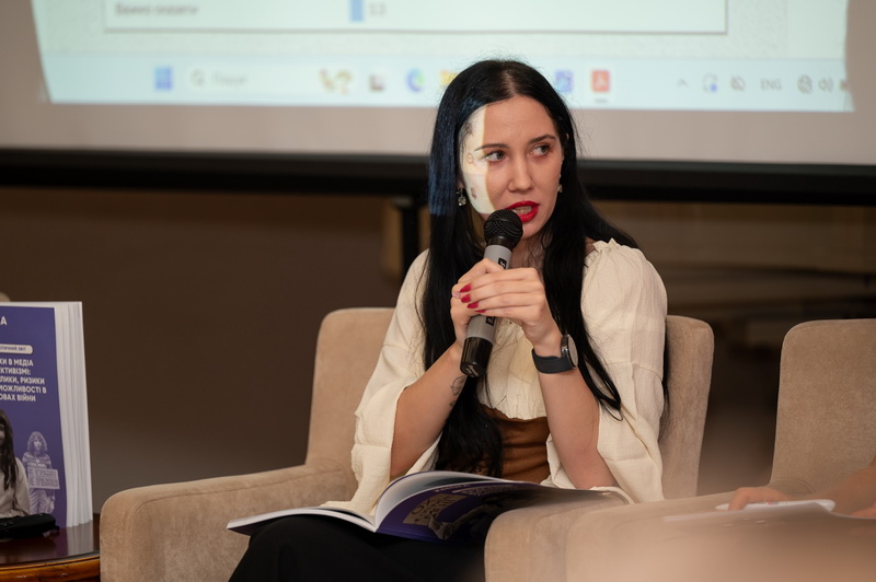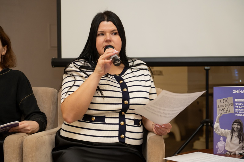 Під час обговорення звіту аналітикиня Фонду “Демократичні ініціативи” імені Ілька Кучеріва Алла Бєлошенко презентувала результати соціологічного дослідження про ризики для жінок-активісток в Україні і про вплив повномасштабного вторгнення на їхню діяльність.
