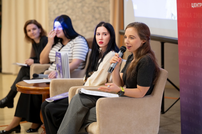 Правозахисниця, менеджерка проєктів Центру прав людини ZMINA Ірина Юзик зосередилася на результатах документування випадків тиску та переслідувань жінок-активісток і правозахисниць. Вона представила другий і третій розділи дослідження, підготовлені журналісткою та дослідницею Анастасією Роді.